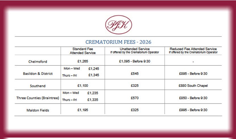 We are required to publish prices from charged by our local crematoria, our Terms of Business, and Business Ownership